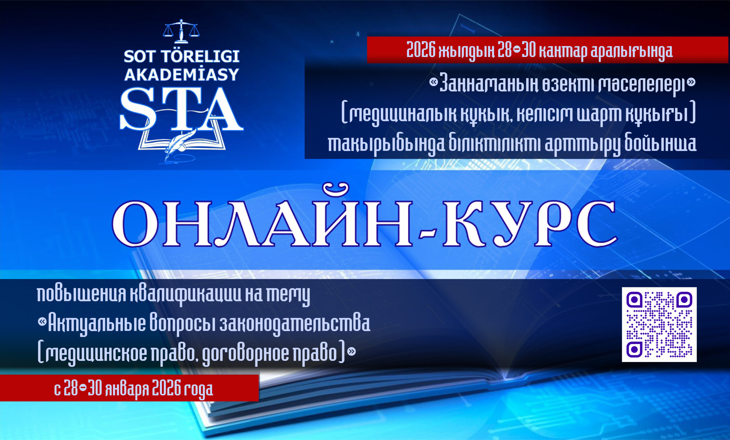 «Заңнаманың өзекті мәселелері» (медициналық құқық, келісім шарт құқығы) тақырыбында біліктілікті арттырудың онлайн-курстары 2026 жылғы 28-30 қаңтар аралығында Қазақстан Республикасының Жоғары Сот Кеңесі жанындағы …